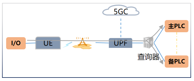實(shí)時(shí)I/O通信是離散制造、流程工業(yè)中最為普遍也最為基礎(chǔ)的通信方式。在測(cè)試床規(guī)劃中,需驗(yàn)證5G服務(wù)于單/雙無(wú)線實(shí)時(shí)I/O通信、冗余PLC與實(shí)時(shí)I/O通信、雙發(fā)選收冗余傳輸I/O實(shí)時(shí)通信等通信場(chǎng)景。