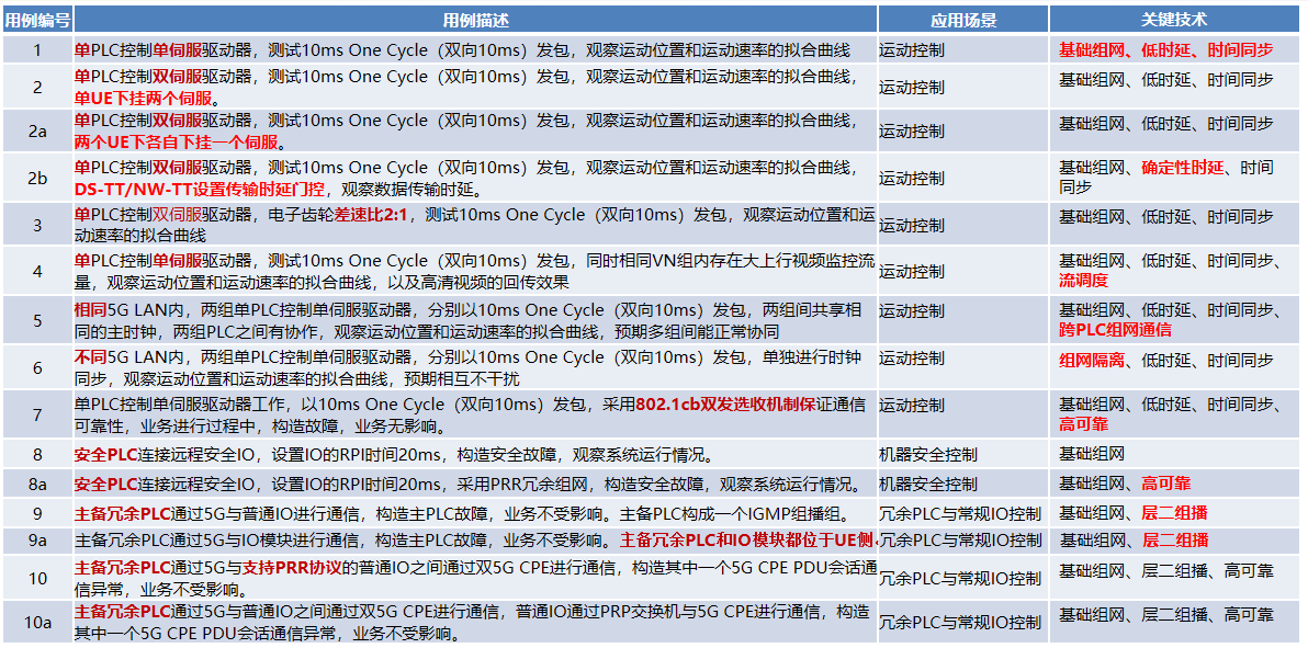 驗(yàn)證5G確定性技術(shù)的能力,驗(yàn)證產(chǎn)業(yè)的支持度,驗(yàn)證5G與工業(yè)協(xié)議的融合度,驗(yàn)證5G通信能力對(duì)工業(yè)自動(dòng)化應(yīng)用場(chǎng)景(數(shù)據(jù)采集、普通IO、機(jī)器安全控制、運(yùn)動(dòng)控制)的覆蓋能力,發(fā)現(xiàn)并解決存在的問(wèn)題。