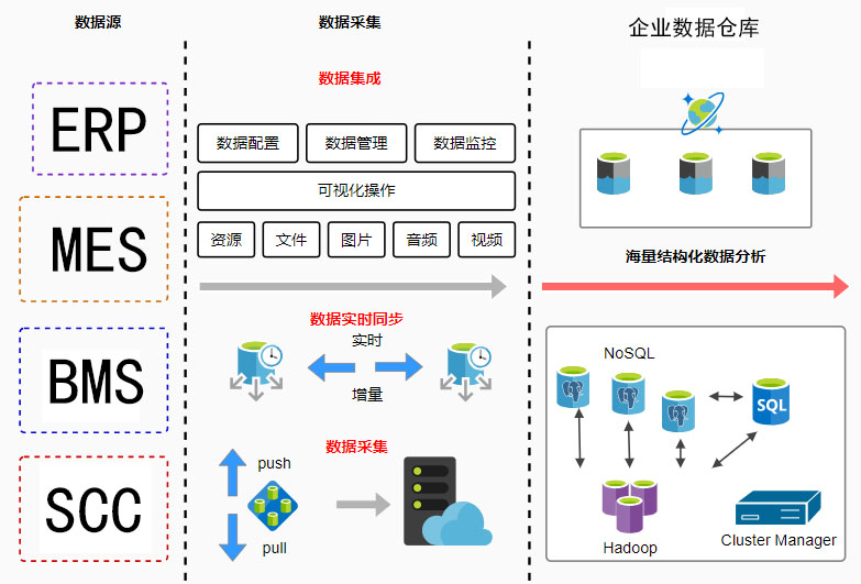 通過設(shè)備/系統(tǒng)接口,打通并采集設(shè)備、業(yè)務(wù)系統(tǒng)數(shù)據(jù),建立企業(yè)主數(shù)據(jù),并通