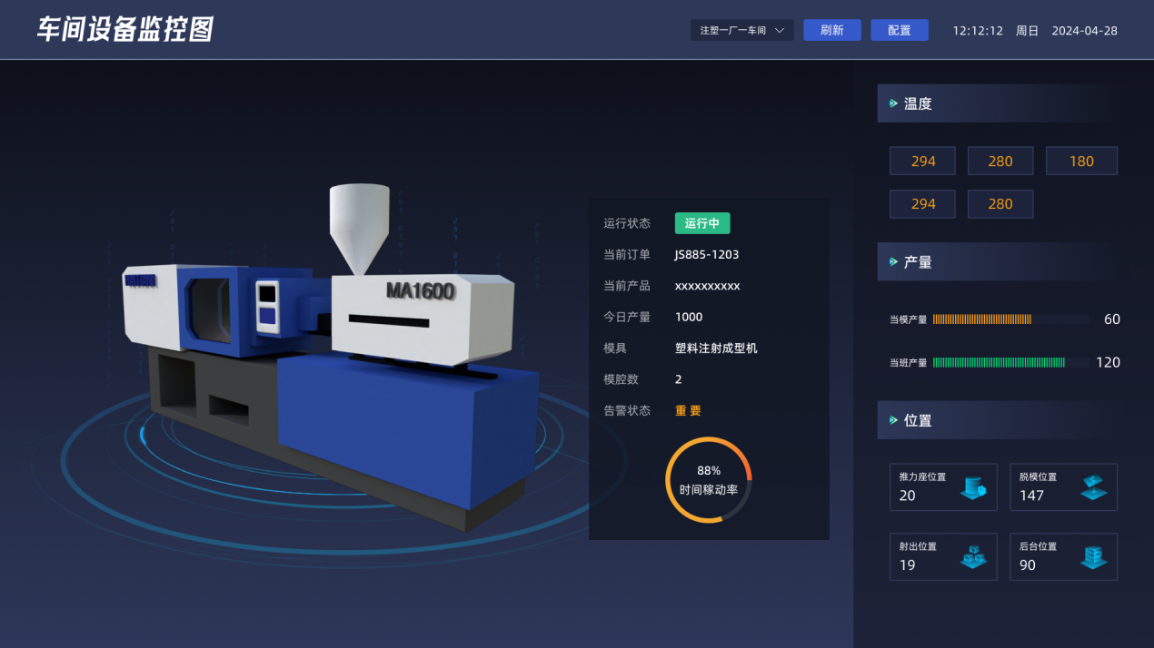 系統(tǒng)同時(shí)提供監(jiān)控關(guān)鍵工藝參數(shù),包括注塑過程的溫度、時(shí)間等關(guān)鍵工藝成型參數(shù)進(jìn)行監(jiān)控,超過閾值進(jìn)行告警。