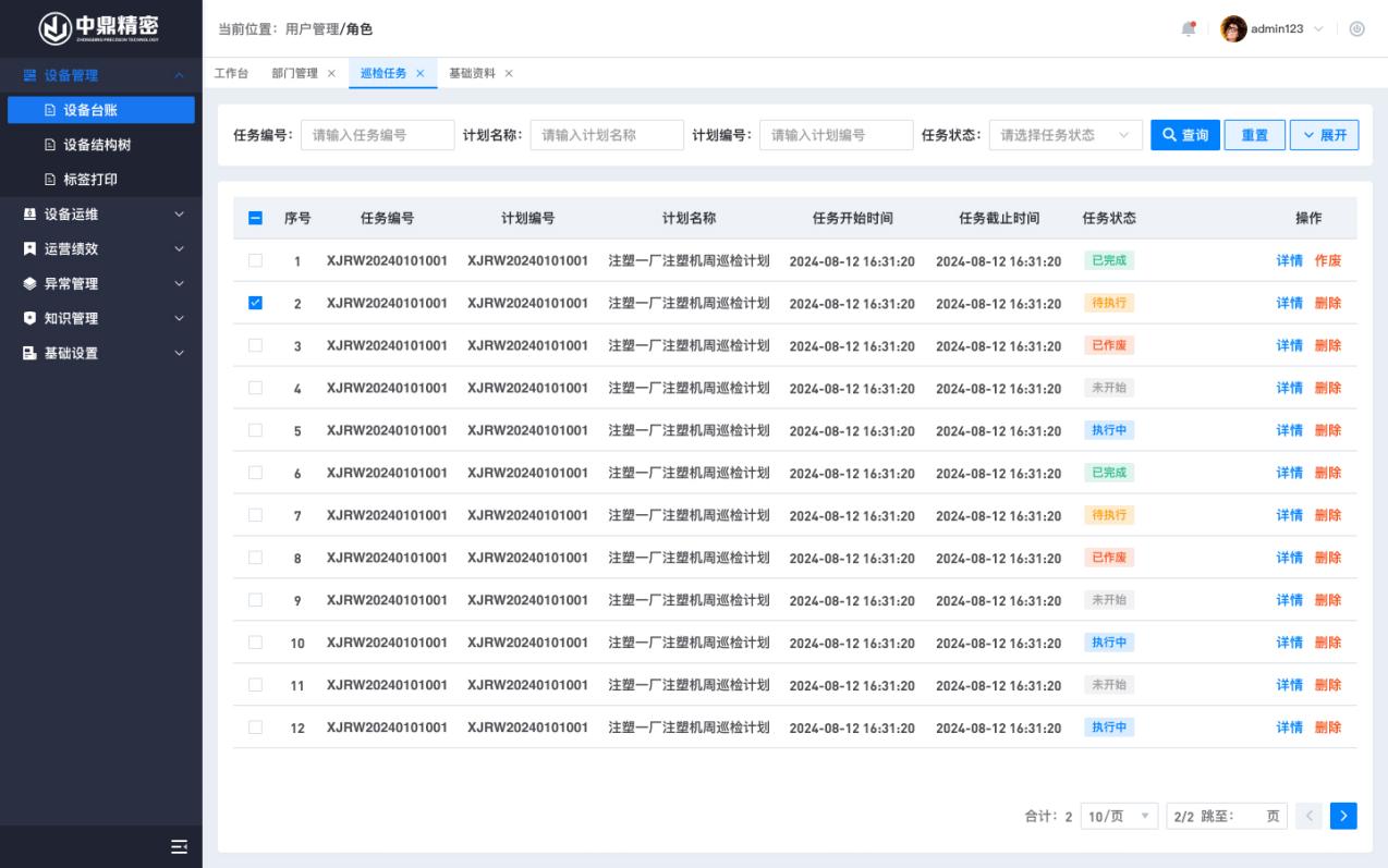 系統(tǒng)會(huì)根據(jù)設(shè)定的標(biāo)準(zhǔn)計(jì)劃自動(dòng)生成保養(yǎng)/點(diǎn)巡檢任務(wù),相關(guān)責(zé)任人員在移動(dòng)端及時(shí)收到任務(wù)提醒,并及時(shí)完成作業(yè)。
