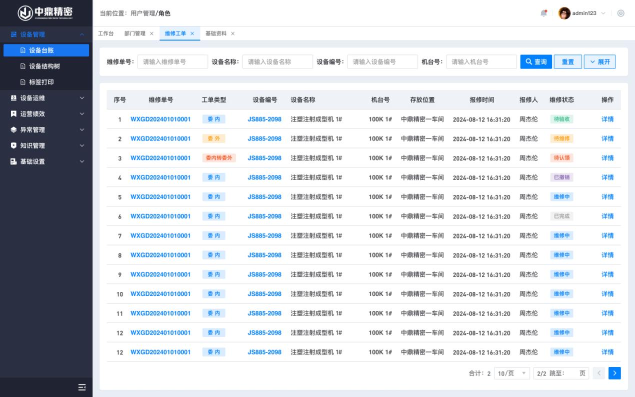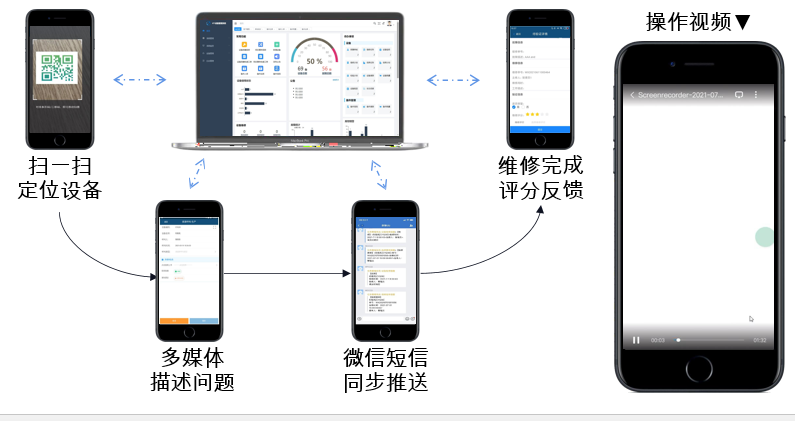 系統(tǒng)支持企業(yè)建立設(shè)備維修工作流程,可在線發(fā)起設(shè)備故障報(bào)修,系統(tǒng)支持以圖片、視頻、文字方式記錄維修過程。