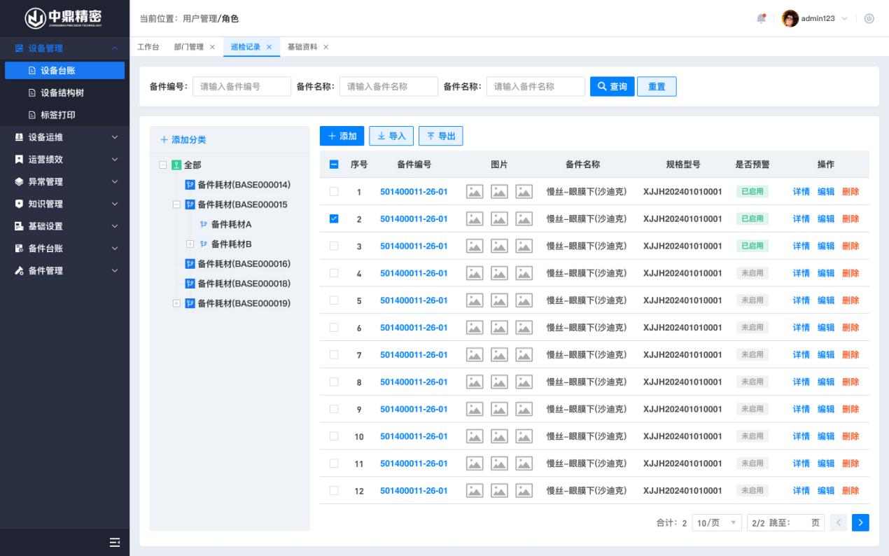 中鼎精密備品備件管理系統(tǒng)實(shí)現(xiàn)備品備件全生命周期的數(shù)字化運(yùn)營和管理,助力企業(yè)實(shí)現(xiàn)全員生產(chǎn)性維護(hù)。
