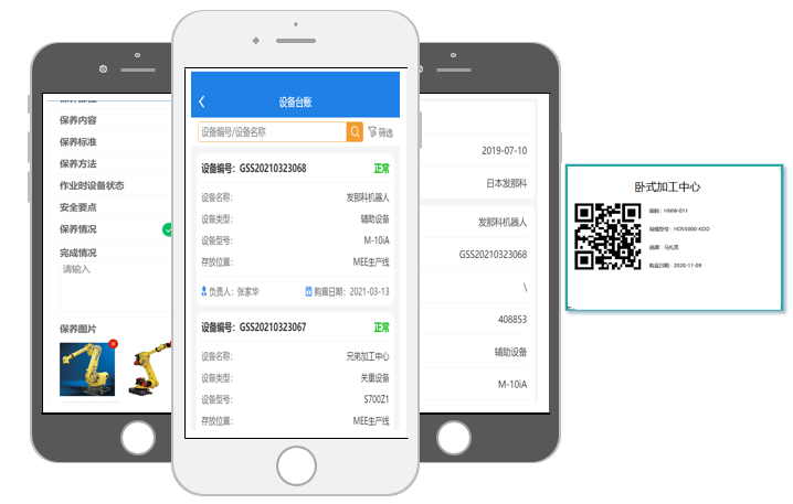 設(shè)備數(shù)字化運(yùn)營系統(tǒng)支持釘釘小程序移動(dòng)端應(yīng)用,為設(shè)備設(shè)置專用二維碼,通過掃描開展設(shè)備報(bào)修、待辦任務(wù)操作、設(shè)備報(bào)表查詢等功能。