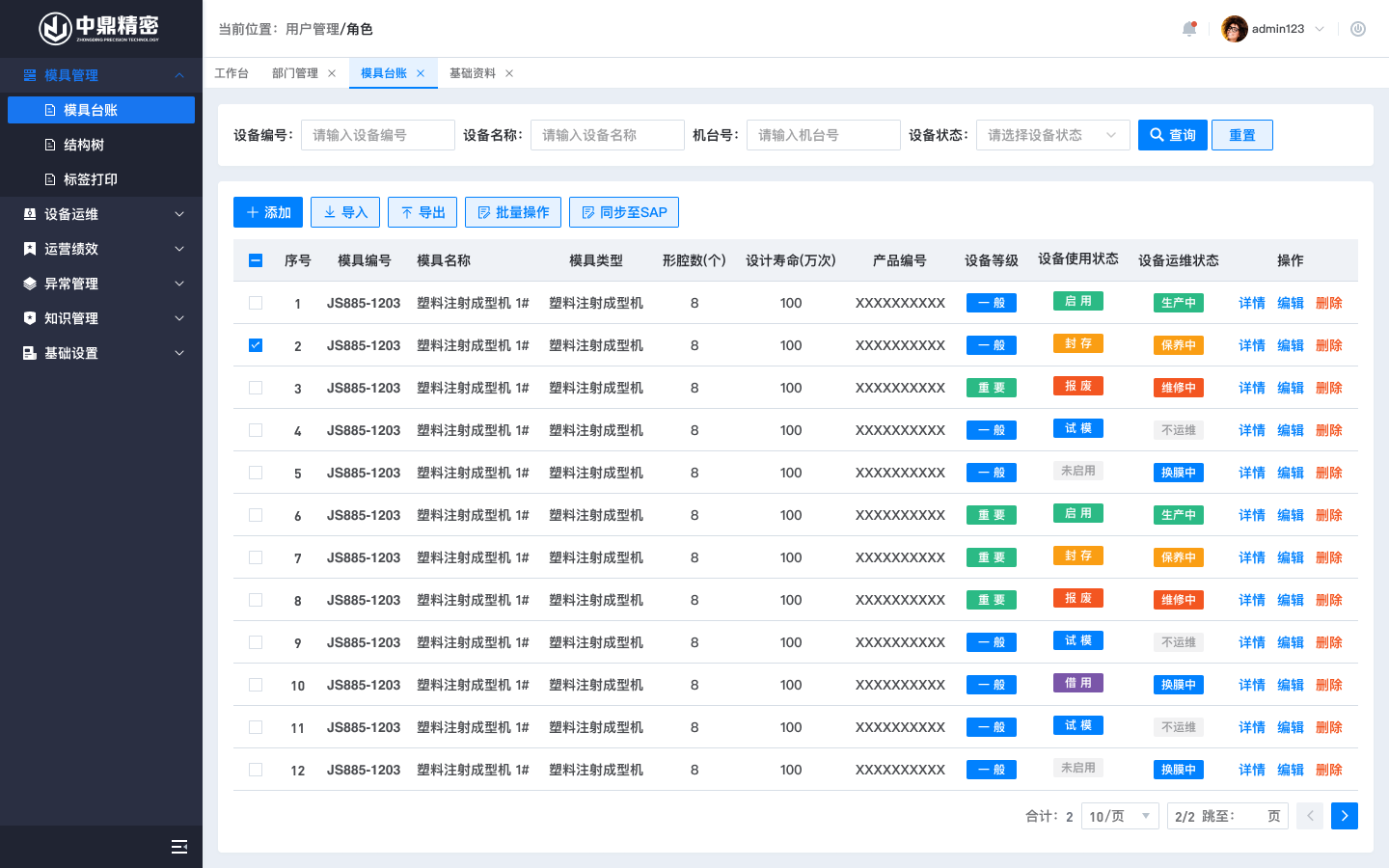 模具臺(tái)賬針對已入庫的模具,進(jìn)行資產(chǎn)的出入庫、狀態(tài)、資產(chǎn)使用情況、使用次數(shù)、模具呆滯位置/周期進(jìn)行全方位管理,為模具后續(xù)的處置、成本攤銷提供原始數(shù)據(jù)。