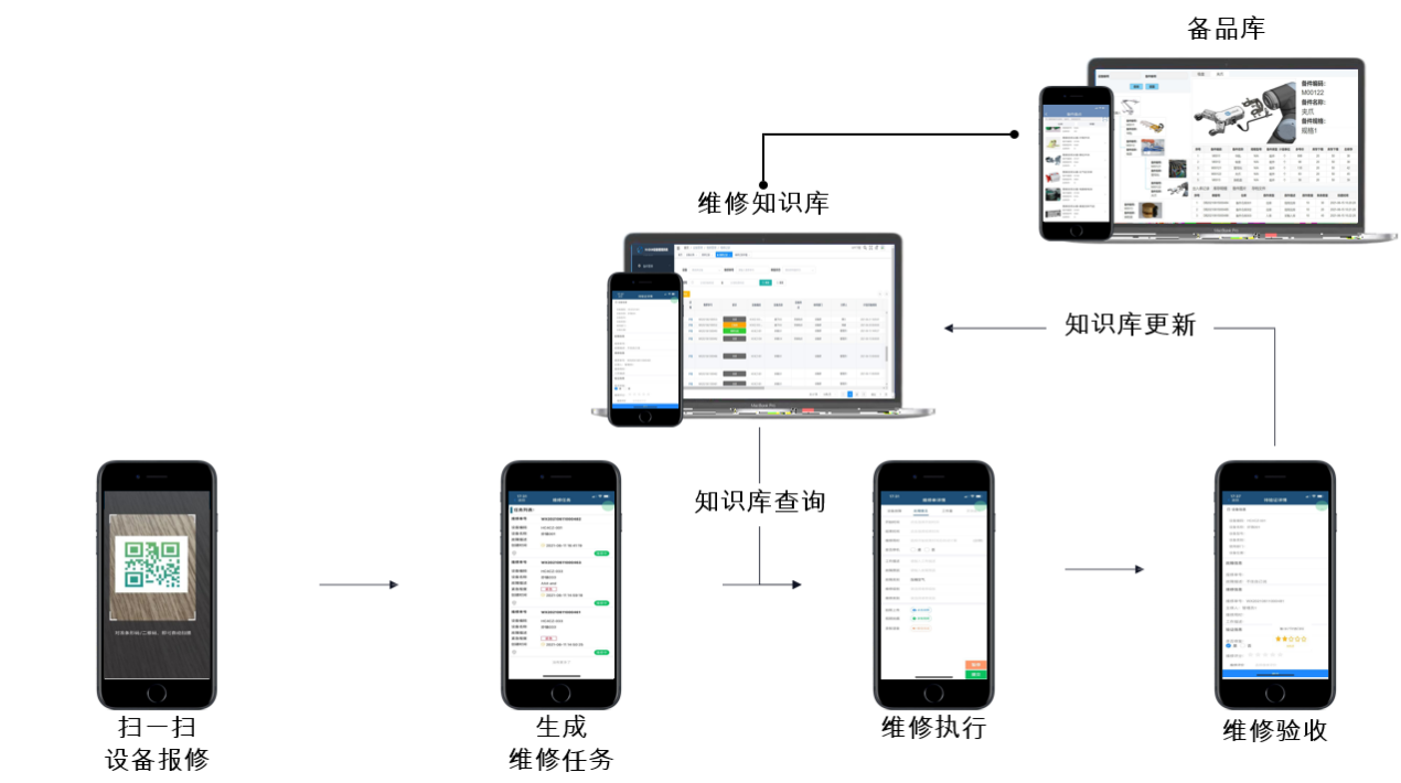 系統(tǒng)提供自動(dòng)/人工發(fā)現(xiàn)裝備故障,自動(dòng)/人工上報(bào),自動(dòng)推薦故障排除方法,最大限度減少故障導(dǎo)致的停機(jī)停產(chǎn)。