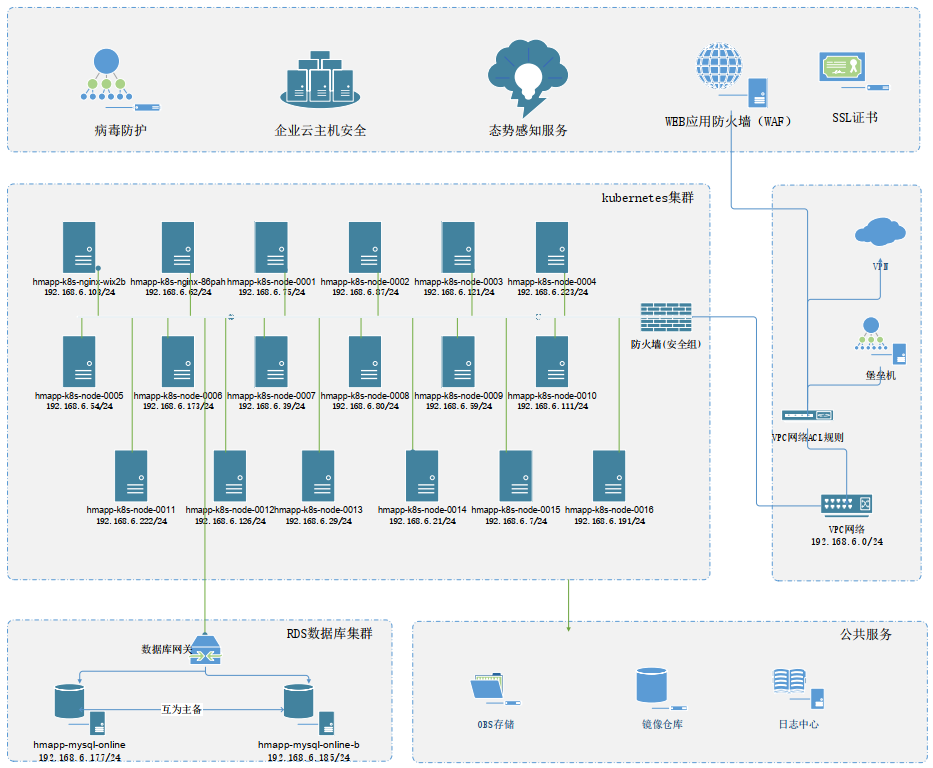 采取縱深防御策略,遵循區(qū)域劃分、邊界隔離、鏈路防護(hù)、通信管控的原則,對中鼎精密數(shù)字化工廠系統(tǒng)平臺(tái)進(jìn)行有針對性的網(wǎng)絡(luò)安全防護(hù)。采用Kubernetes集群的安全機(jī)制,對平臺(tái)各個(gè)功能按模塊化劃分,通過云平臺(tái)實(shí)現(xiàn)安全分組分域管控;結(jié)合企業(yè)云主機(jī)安全、態(tài)勢感知服務(wù)、WEB應(yīng)用防火墻(WAF)、Web漏洞掃描、Anti-DDoS流量清洗服務(wù),通過VPC(Virtual Private Cloud)私有云上自定義多維度、多層次的邏輯隔離網(wǎng)絡(luò)空間,自定義網(wǎng)段劃分、IP地址和路由策略等,并通過安全組和網(wǎng)絡(luò)ACL規(guī)則等實(shí)現(xiàn)多層安全防護(hù),實(shí)現(xiàn)訪問控制和安全隔離服務(wù)。