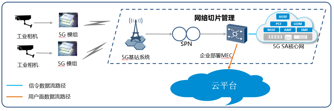 5G具備更高的速率,更低的時延,更大的連接,有感知泛在、連接泛在、智能泛在的特點,5G將成為未來工業互聯的基石。本項目網絡組網架構見下圖: