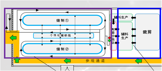 車間內生產車間、通道、倉儲、辦公室、輔助服務設施等布局規劃、內物流路線規劃;