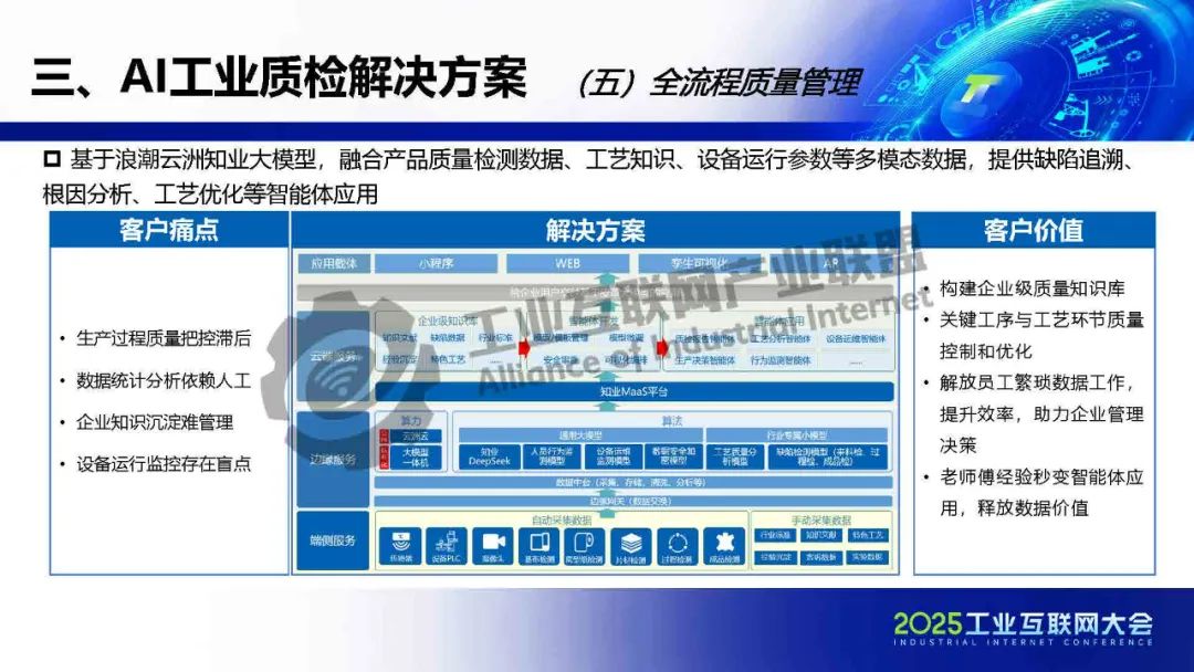 5月22日,在2025工業互聯網大會“人工智能與工業互聯網融合創新發展專題活動”上,浪潮云洲工業互聯網國器智眸首席技術官黃麟發表了《重構工業質檢:用AI“慧眼”搭建智造質量新防線》的主題演講。