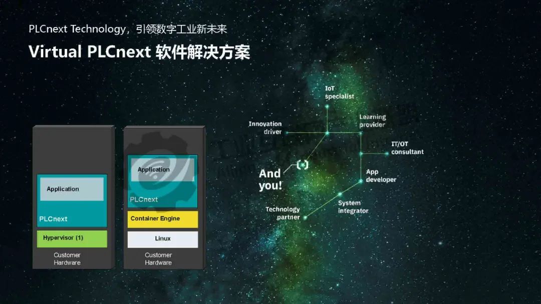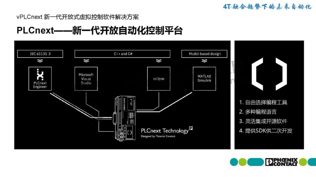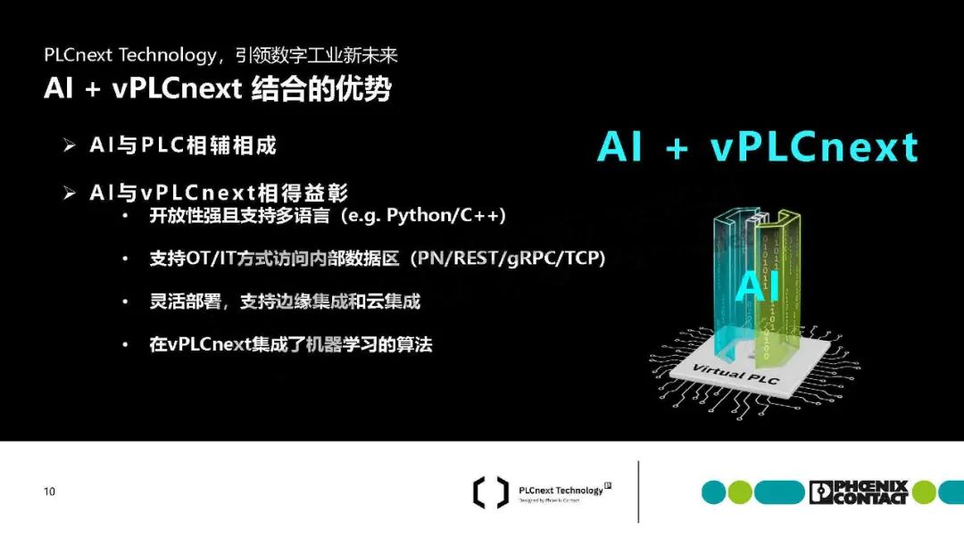 梁恩泉介紹,菲尼克斯電氣推出基于PLCnext技術(shù)的SoftPLC解決方案,突破傳統(tǒng)PLC硬件限制,實現(xiàn)虛擬化部署。該方案將PLC運行時環(huán)境(SoftPLC Runtime/eCLR)嵌入用戶硬件平臺,支持IEC 61131-3與C/C++等高級語言混合編程,并兼容工業(yè)機器人、數(shù)控機床等多場景需求。最新發(fā)布的PLCnext Virtual Control作為純軟件方案,可在通用硬件上動態(tài)創(chuàng)建PLC實例,實現(xiàn)功能靈活擴展和集中維護。該技術(shù)通過IT/OT深度融合,集成開源生態(tài),為基礎(chǔ)設(shè)施、能源、工廠自動化等領(lǐng)域提供數(shù)字化底座,推動工業(yè)自動化進入"硬件平臺化、軟件服務(wù)化"的新階段。