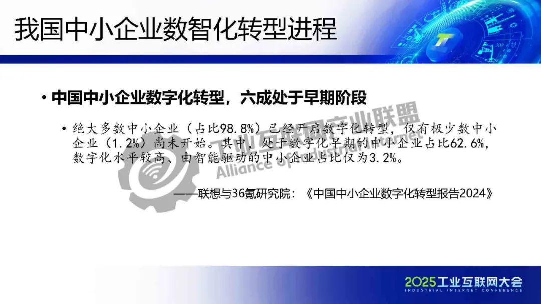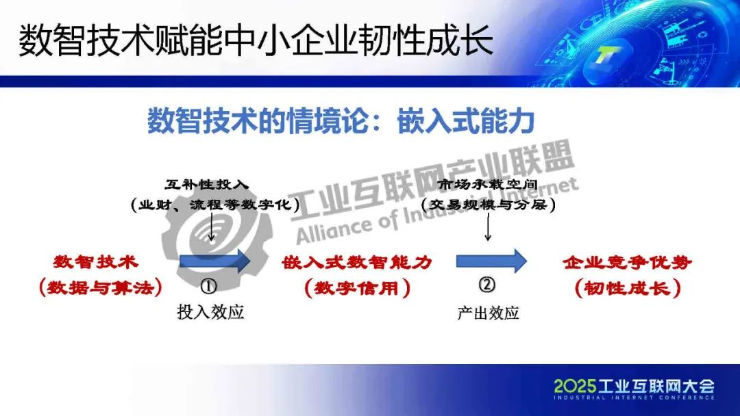 鄔愛其介紹,數智技術正成為中小企業(yè)韌性成長的關鍵驅動力。數智技術通過提升協(xié)同效率、優(yōu)化供應鏈和構建創(chuàng)新生態(tài),顯著增強企業(yè)競爭優(yōu)勢,但其效能取決于組織的互補性投入和市場承載空間。我國中小企業(yè)數智化轉型進程加速,政策支持力度加大,2024年多項政策文件出臺推動試點和評測,但整體仍處早期階段。數智技術通過構建數字信用體系賦能韌性成長,例如金蝶信科的AI融資匹配方案,利用產業(yè)鏈數據圖譜穿透上下游風險,助力企業(yè)精準識別客戶與供應商。專精特新企業(yè)成為轉型中堅,集群化、“鏈式”轉型模式逐步成型。未來需進一步解決技術嵌入能力與市場變現的協(xié)同問題。