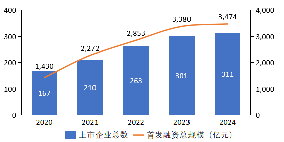 報告顯示,截至2024年底,我國工業互聯網核心產業規模突破1.5萬億,融合應用覆蓋41個工業大類。盡管2024年我國IPO政策有所調整,但工業互聯網上市企業數量仍保持穩健擴容,2024年新增上市企業10家,領域總上市企業數超310家。2024年,領域上市企業營收規模超4萬億元,利潤超2900億元,營收盈利實現雙增長,展現出良好的市場吸引力。
