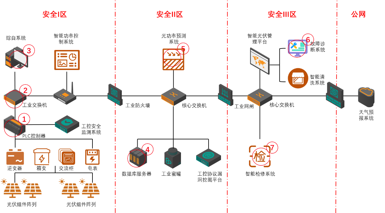 安全防護系統提供業界常用的主流安全防御體系,如工業防火墻、工控審計平臺、主機衛士等等。