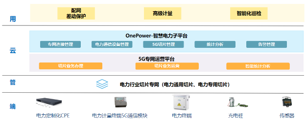 面向電力客戶提供電力行業切片專網服務,生產控制大區提供電力專用切片,管理控制大區提供電力通用切片。