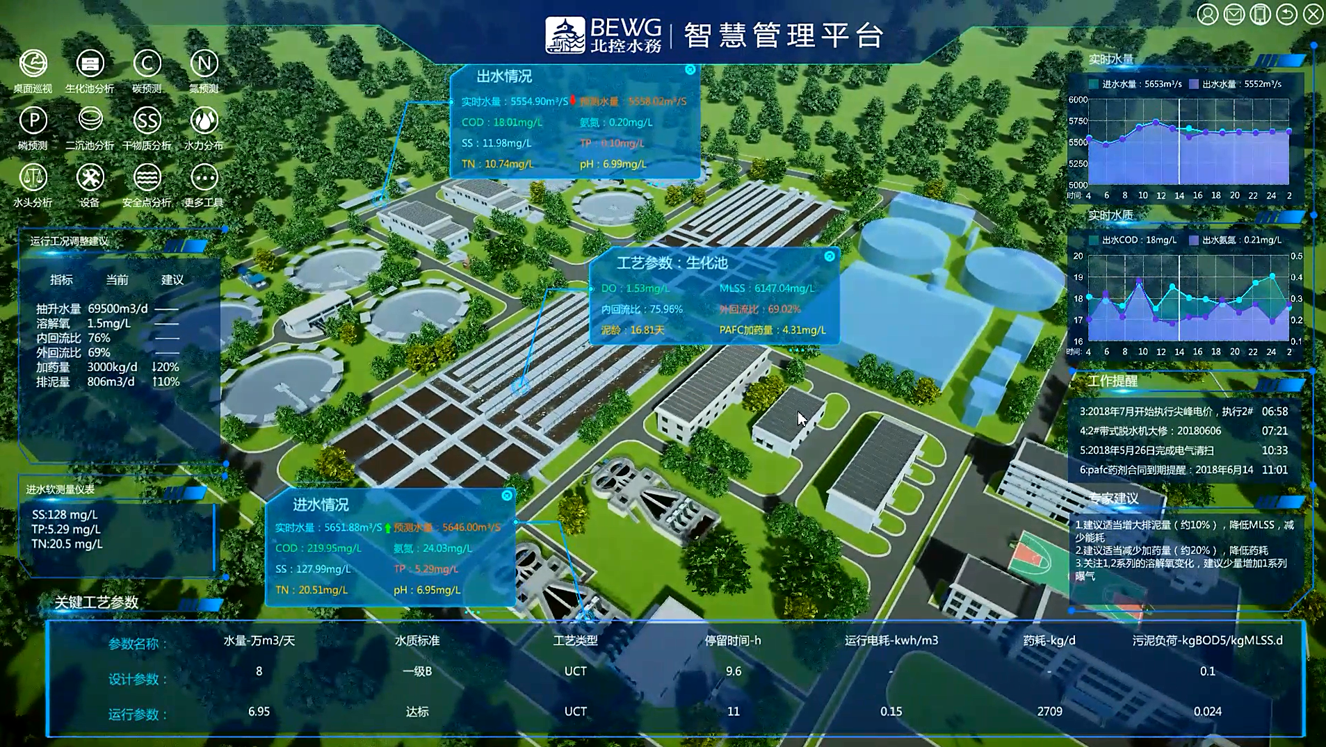 未來集團下屬的市政污水廠、村鎮污水廠、再生水廠、供水廠、污水提升泵站的生產數據的全面收集。