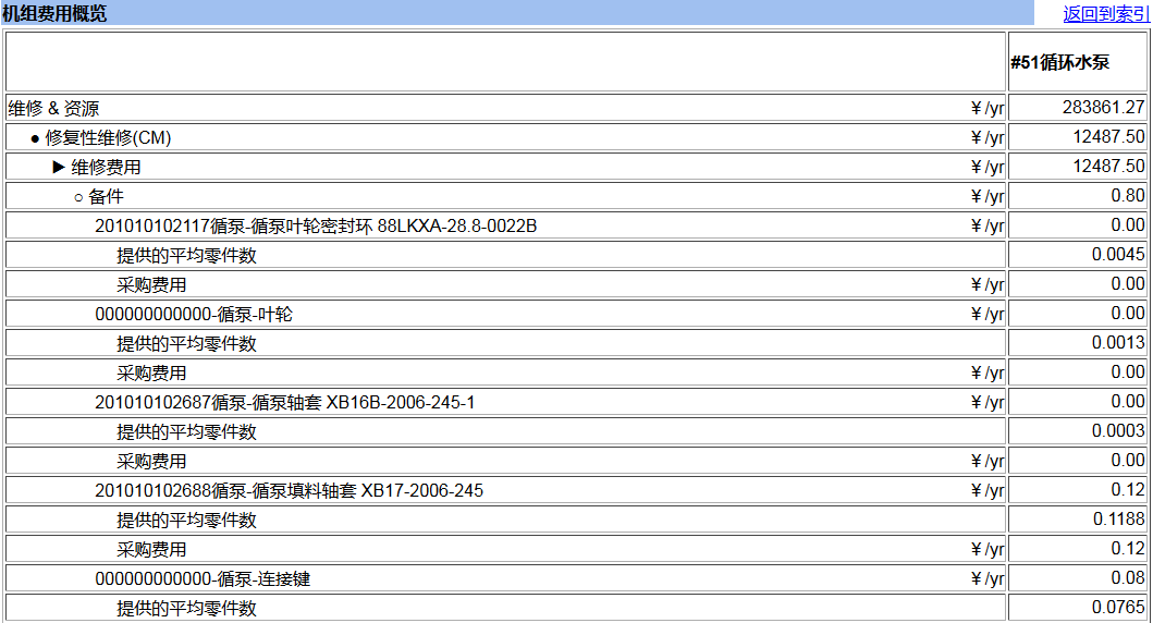 通過(guò)制定各設(shè)備的拆解結(jié)構(gòu)關(guān)系,失效原因分類,不同部件的可靠性壽命時(shí)間,檢修成本等,并與實(shí)際檢修記錄相結(jié)合,建立以可靠性為中心的維護(hù)優(yōu)化策略,通過(guò)調(diào)整和比對(duì)不同的檢修方案,優(yōu)化現(xiàn)有的檢修策略,達(dá)到消除設(shè)備欠修,避免設(shè)備過(guò)修的目的,在整體保障設(shè)備可靠性的同時(shí),降低檢修費(fèi)用。為設(shè)備的經(jīng)濟(jì)性提供了支撐。