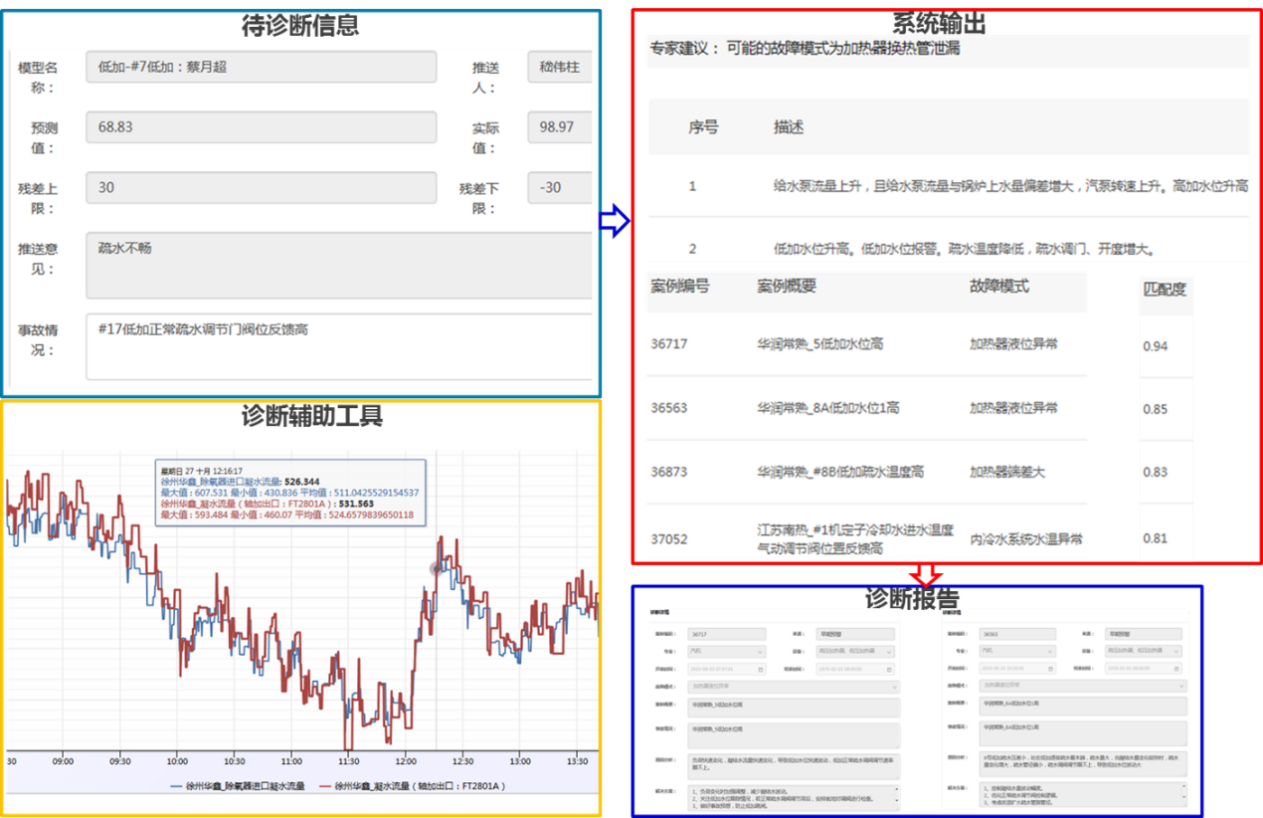 除了發(fā)現(xiàn)潛在的問題外,系統(tǒng)還希望能夠幫助技術(shù)人員進(jìn)一步找出“病因”并開出“藥方”。高級(jí)診斷模塊中采用了自然語(yǔ)言處理(NLP)、詞向量、傳感器數(shù)據(jù)分析(SDA)等智能診斷技術(shù)的最新成果,以“中西醫(yī)結(jié)合”的方法實(shí)現(xiàn)對(duì)故障的診斷,并推薦以往處理方案。目前的診斷成功率超過(guò)85%,通過(guò)診斷系統(tǒng)的應(yīng)用,形成華潤(rùn)電力統(tǒng)一的知識(shí)庫(kù),使知識(shí)得以分享和傳承。