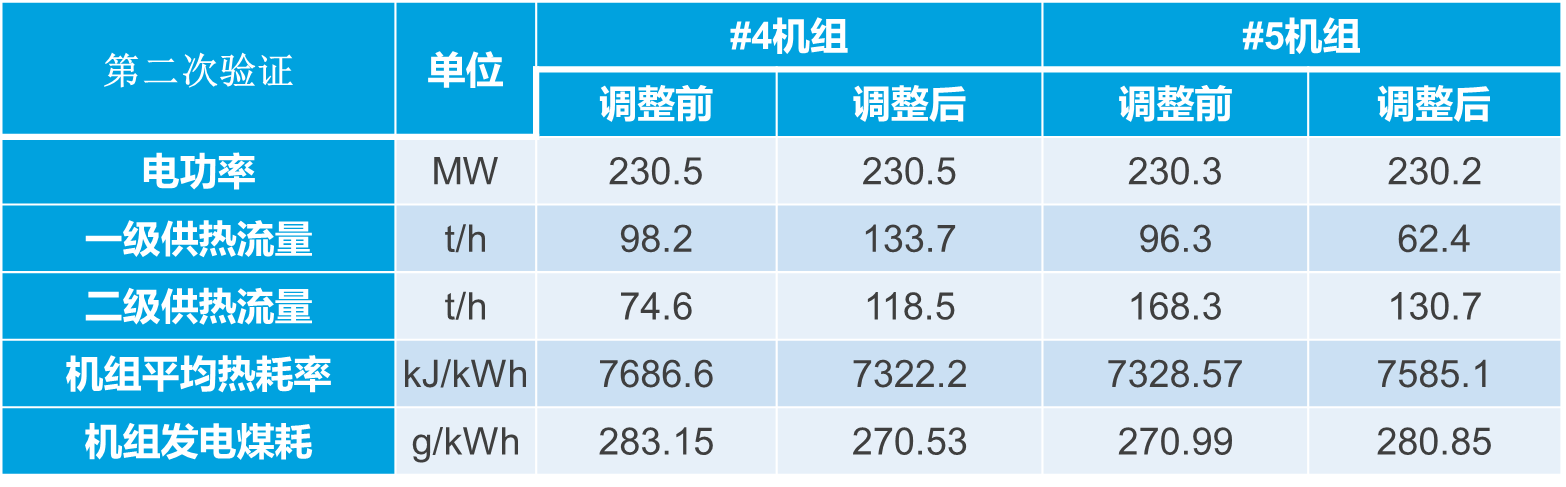 實(shí)時(shí)負(fù)荷分配模塊2019年8月22日在化工園的#4和#5機(jī)組進(jìn)行了實(shí)時(shí)負(fù)荷分配的試驗(yàn),分別進(jìn)行了單機(jī)電負(fù)荷210MW、230MW下供熱負(fù)荷轉(zhuǎn)移的實(shí)時(shí)負(fù)荷優(yōu)化效果驗(yàn)證。試驗(yàn)效果如下表所示,結(jié)果表明:扣除供熱變化因素,優(yōu)化節(jié)能量折合標(biāo)煤1.8t/h,210MW下供熱負(fù)荷轉(zhuǎn)移的試驗(yàn)結(jié)果,優(yōu)化后的約合全廠發(fā)電煤耗下降4.25g/kWh,230MW下供熱負(fù)荷轉(zhuǎn)移的試驗(yàn)結(jié)果表明,優(yōu)化后的約合全廠發(fā)電煤耗下降2.05g/kWh。實(shí)際節(jié)能量根據(jù)負(fù)荷、工況不同,較平均分配有1~5g/kWh的下降。