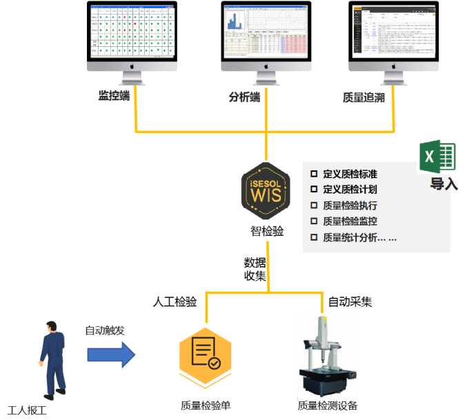 (2)產品質量檢驗主要通過人工操作質量檢測設備,對產品進行質量檢驗,主要通過紙質表格或檢測報告進行質量數據收集。質量數據與生產數據未進行有效的關聯,無法形成有效的追溯