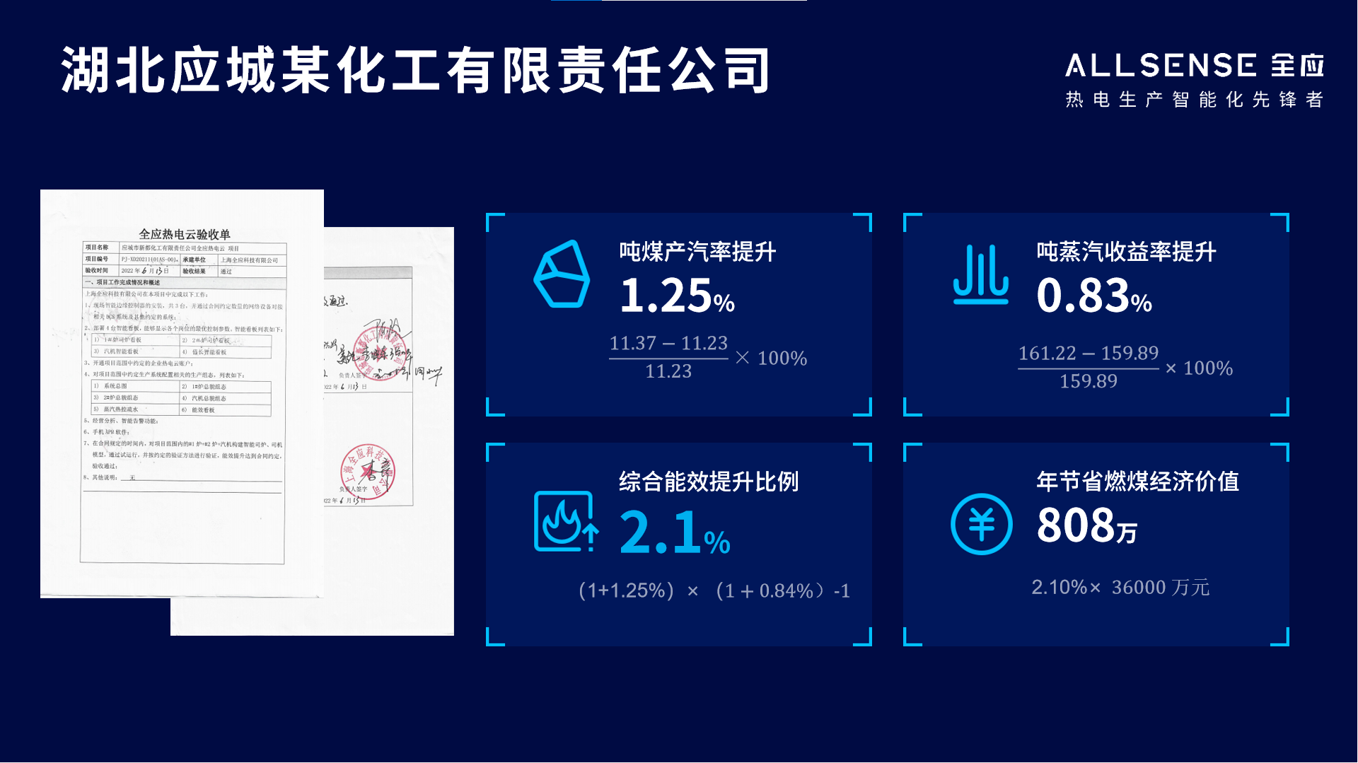 全應熱電云上線運行后,整體交付效果達到合同期望,能效提升達2.1%,企業年耗煤30~35萬噸,直接燃煤節省共計6737噸,加入煤價按1200元/噸,成本共計節省:808萬。