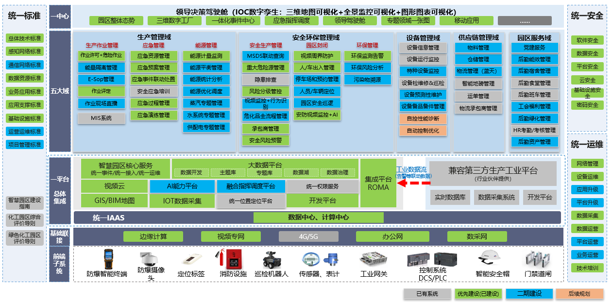 水平整合:統管系統、生產系統、網絡安全三類業務,圍繞安全生產,以智慧園區試點項目落地;