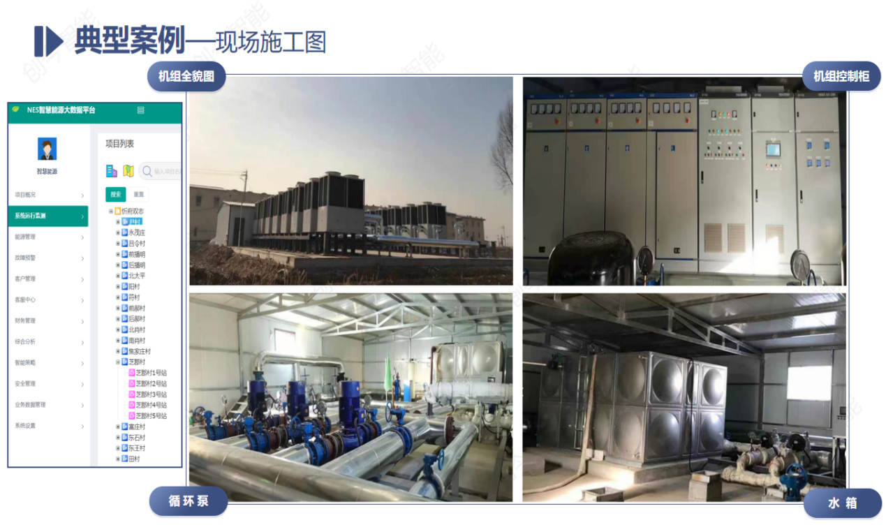 忻州市忻府區(qū)2020年度“煤改電”區(qū)域集中供暖項目,供暖面積131萬平方米,覆蓋6個鎮(zhèn)鄉(xiāng)18個村10106戶居民。項目涉及空氣源熱泵機(jī)組及相關(guān)系統(tǒng)設(shè)備,配套創(chuàng)今智能公司現(xiàn)場智能控制系統(tǒng)以及創(chuàng)今智慧能源大數(shù)據(jù)平臺。