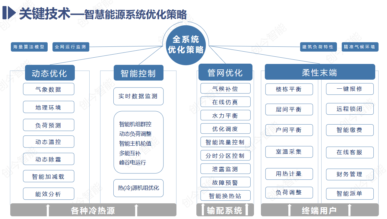 過網(wǎng)絡(luò)與創(chuàng)今現(xiàn)場智能控制系統(tǒng)精準(zhǔn)操控,實現(xiàn)“源、網(wǎng)、荷、儲、用”全系統(tǒng)動態(tài)化、精細(xì)化調(diào)整,最終達(dá)到全網(wǎng)平衡,保持能源站長期最高效運行,實現(xiàn)能源站“按需供熱”,高效節(jié)能減排。