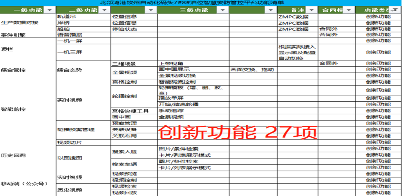 一期二期配套建設的欽州港大欖坪南作業區7#8#9#10#泊位智能控制系統項目的安全防控系統(智慧安防)是自動化集裝箱碼頭的信息化系統的重要組成部分。