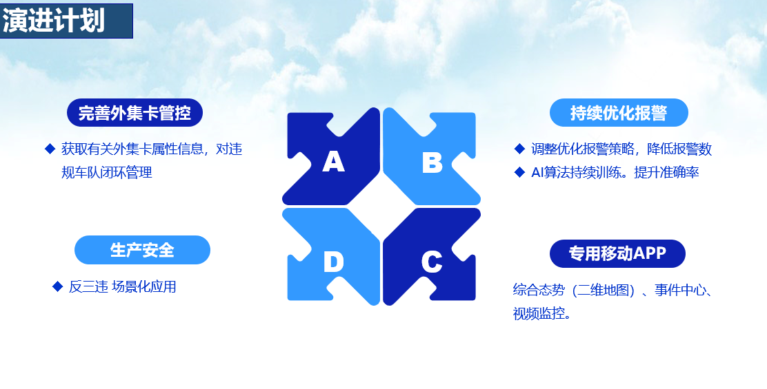 (3)生產安全: 依據目前已部署的安防資源,開發更多“反三違”場景化應用以及HSE安全生產管理體系的數字化流程化管理,對違章操作過程進行多場景監管和預警。