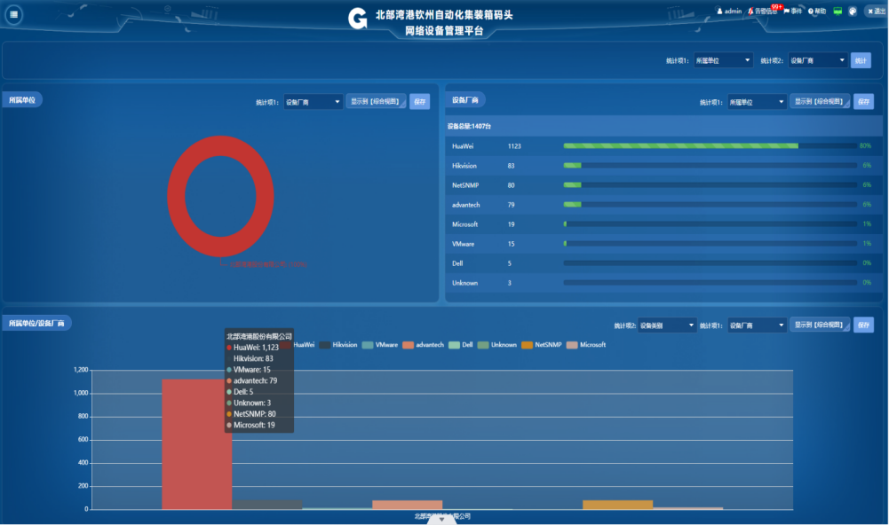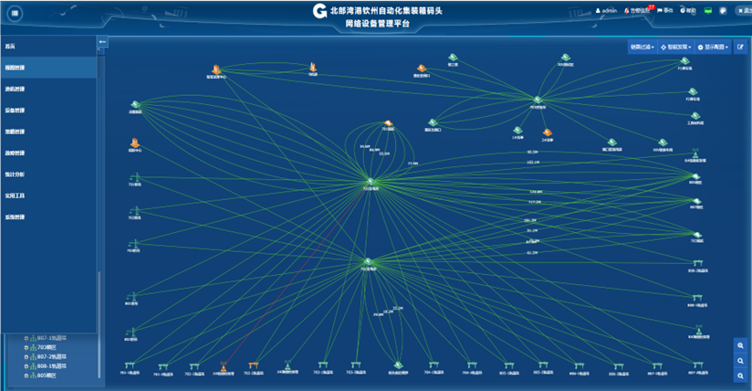采用SNMP、Redfish、Modbus等協議,智能管控超過 3000 種設備,包括:港機管理、無線和有線設備管理、服務器管理、安全接入控制管理、視頻設備和物聯網設備管理等,主要功能;自動發現、拓撲管理、地圖視圖、機柜視圖、業務視圖、故障管理、網絡安全管理、故障經驗庫、資產管理、統計分析等。